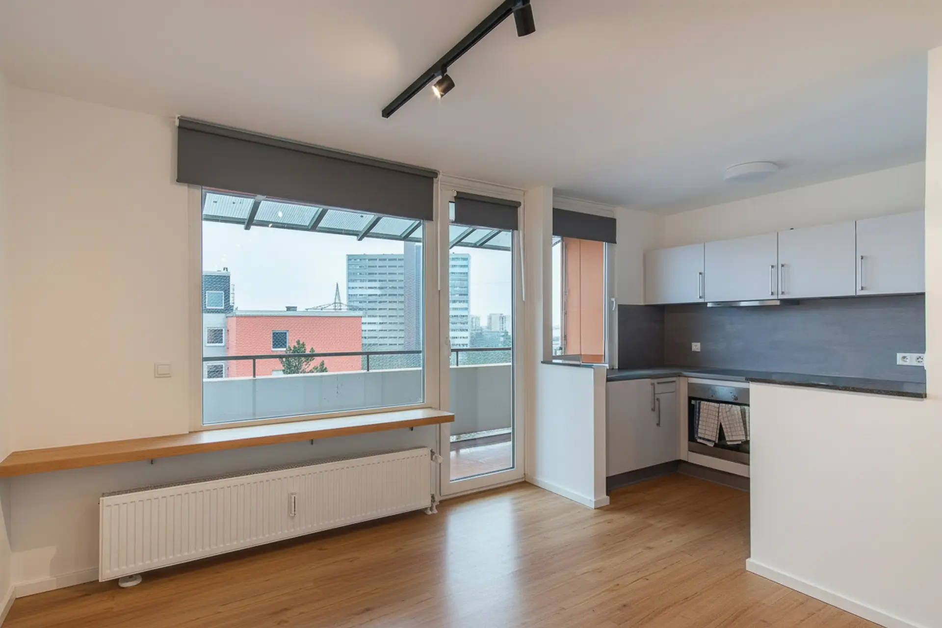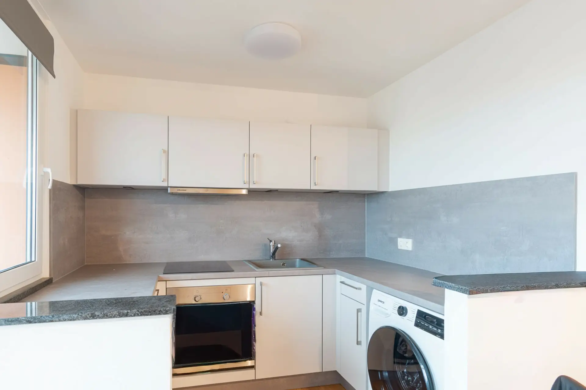 Neue Einbauküche inkl. Geräte und Waschtrockner (beides in der Miete enthalten). Modernes Bad mit Dusche, hochwertiger Vinylboden in Holzoptik, neue Türen und Kunststofffenster. Ein Aufzug führt direkt bis ins 8. Obergeschoss. Ein Kellerabteil ist ebenfalls vorhanden.