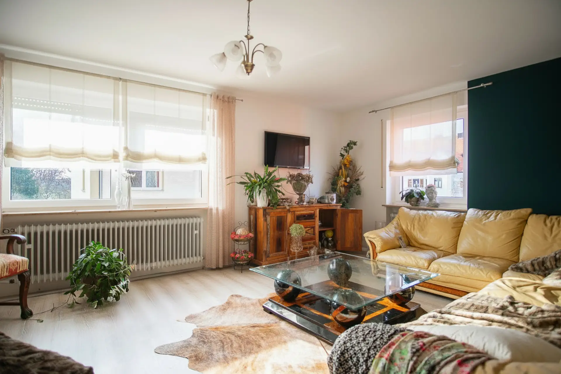Diese helle, modernisierte Wohnung im 1. Obergeschoss eines Zweifamilienhauses bietet auf ca. 82 m² ein komfortables Zuhause mit gepflegter Einbauküche, großem Wohnzimmer, Schlafzimmer, Tageslichtbad mit begehbarer Dusche sowie einem sonnigen Balkon.